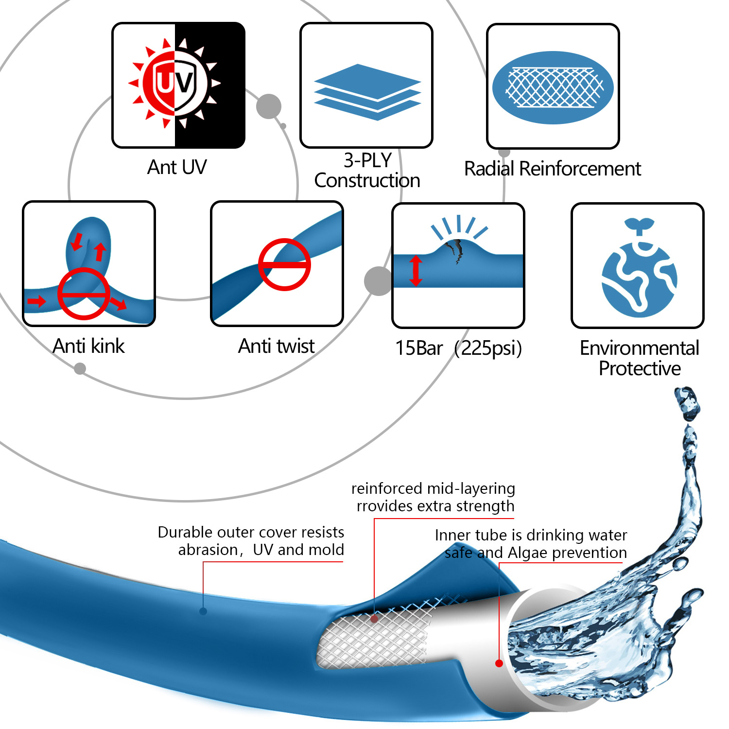 概要: 轻型花园软管。卷轴车水龙头的理想型软管。由增强的多层PVC(聚氯乙烯)制成,以防止扭结和提供全天候的灵活性。 特点是黄铜软管末端。不支持用于饮用水管。